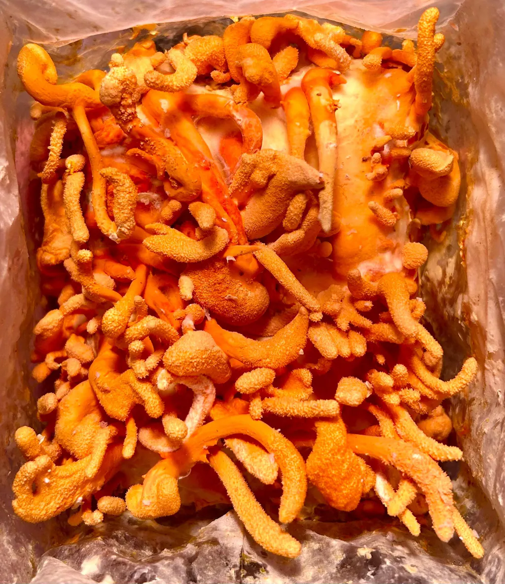 Grow larger quantities of potent Cordyceps Militaris at home with ease. This ready-to-fruit kit arrives partially colonized using our top-performing Cordyceps strain and is packed with a proprietary nutrient-rich brown rice blend. Designed for simplicity and high yield, you can expect your first flush of vibrant orange fruiting bodies within just a few weeks. Whether you're new to cultivation or an experienced grower, this kit takes the guesswork out of growing this medicinal powerhouse.
